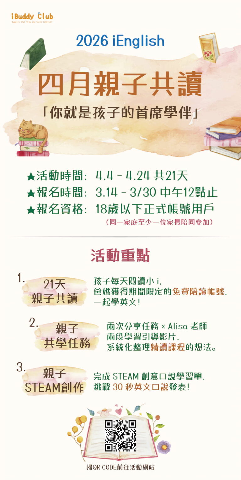 💡報名費用: 680元/人,家長陪伴免費參加,含[iEnglish 神隊友21天陪伴帳號]乙個