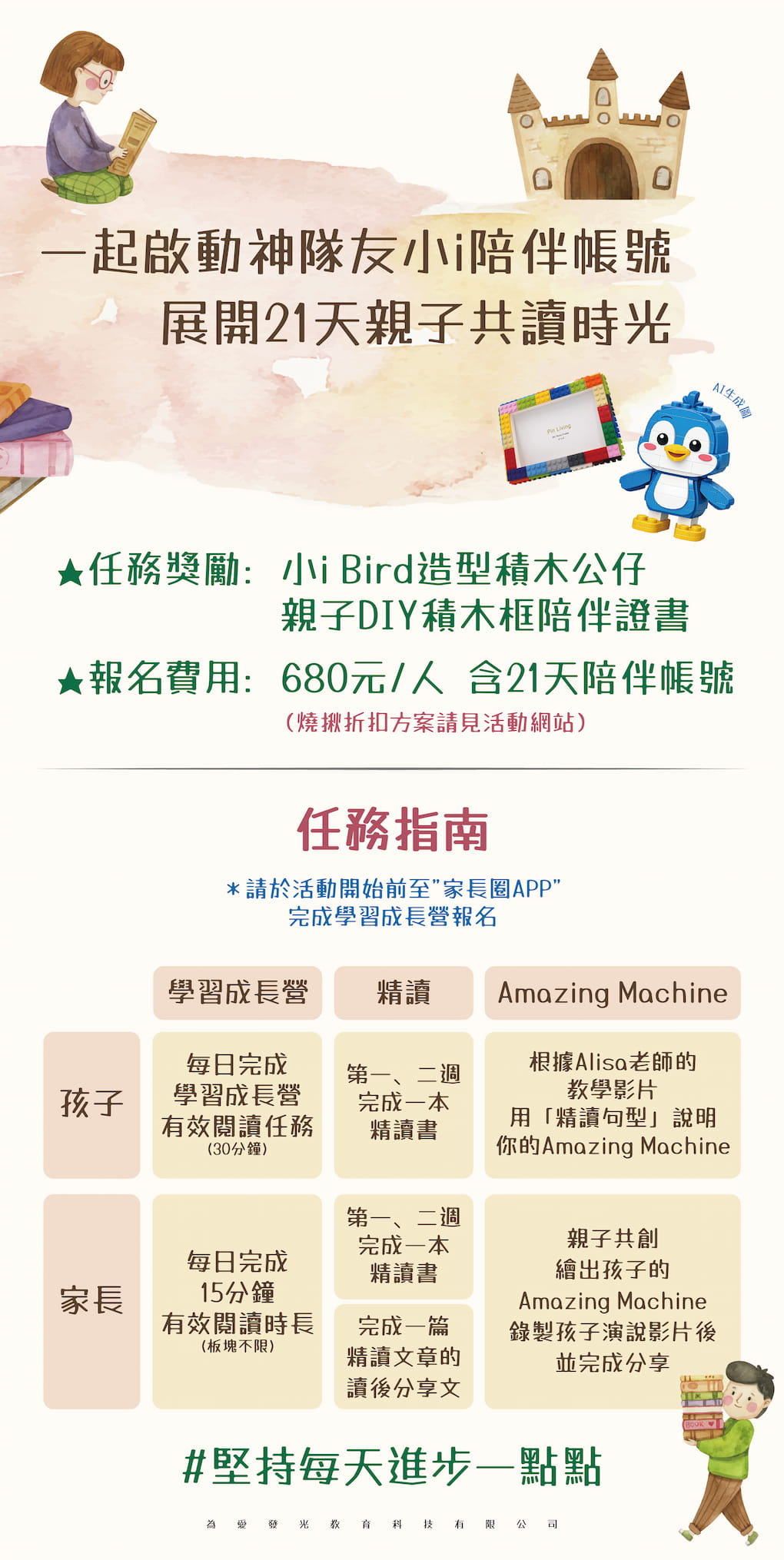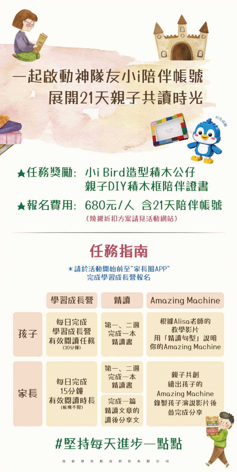 🎁 親子共同完成所有21天陪伴養成任務+三週精讀任務才可獲得任務獎勵。